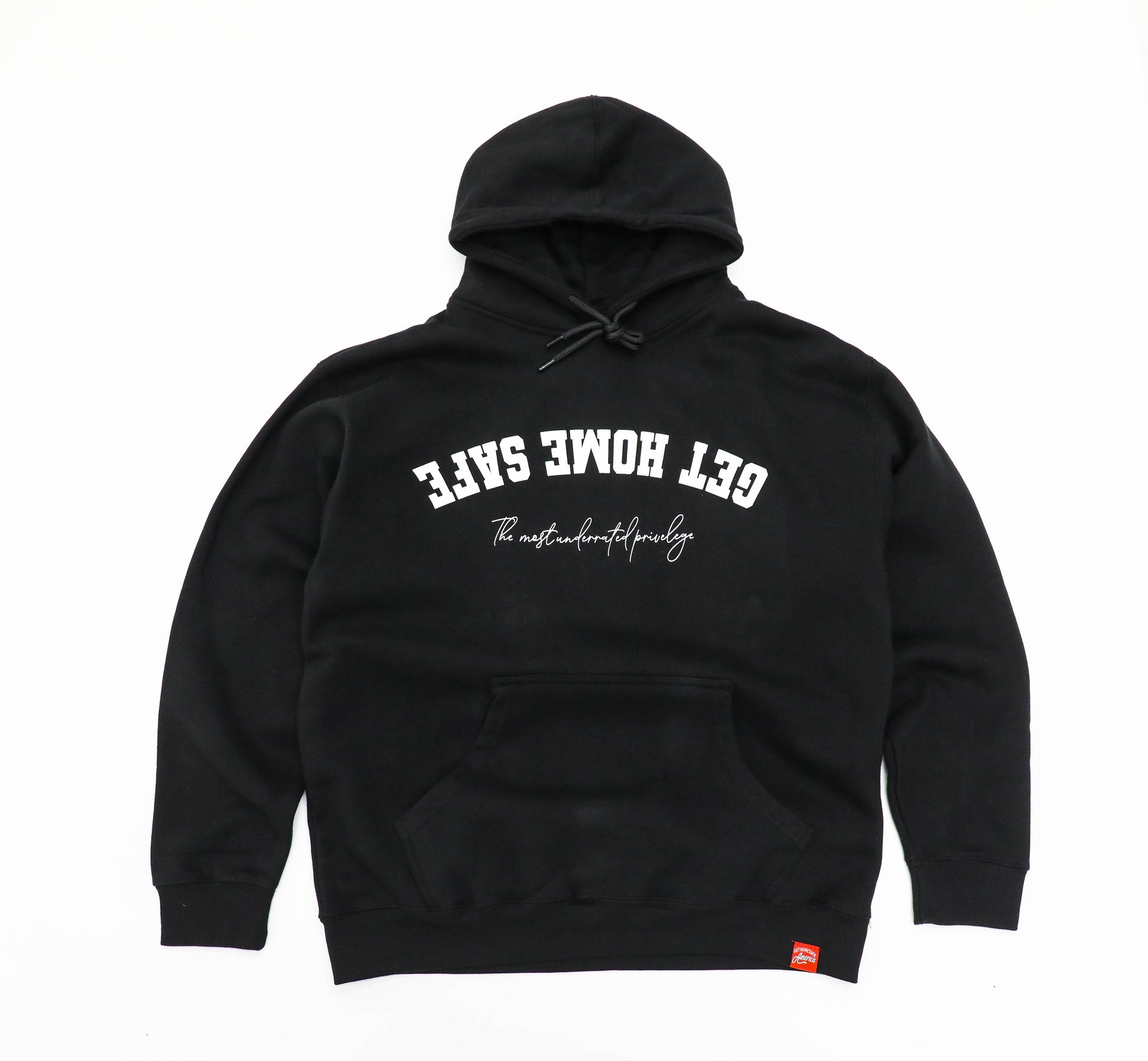 The Most Underrated Privilege Hoodie is a bold essential from GET Home Safe America, designed to carry both message and meaning. The front features an arched “GET HOME SAFE” print with “The most underrated privilege” beneath, while the back carries the handwritten script: “A lot of times we not looking at the war properly – Get Home Safe.” Built with heavyweight fleece and an oversized fit, this hoodie delivers streetwear authenticity while reminding us that making it home is the ultimate privilege.